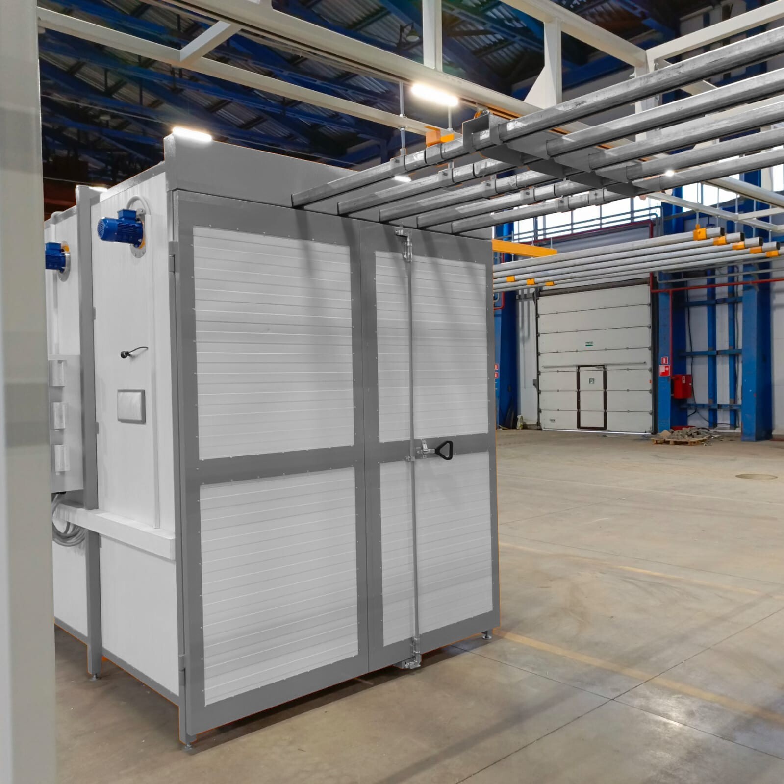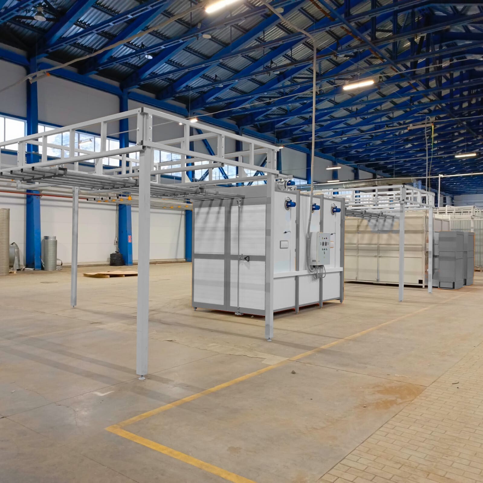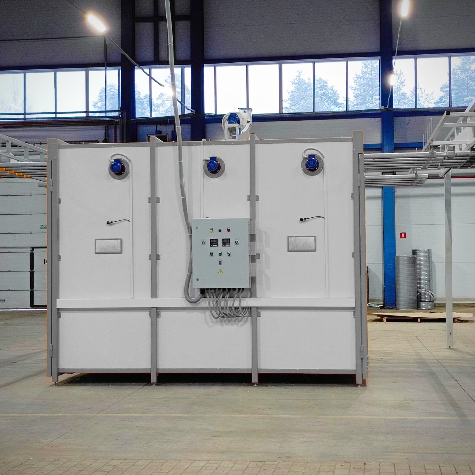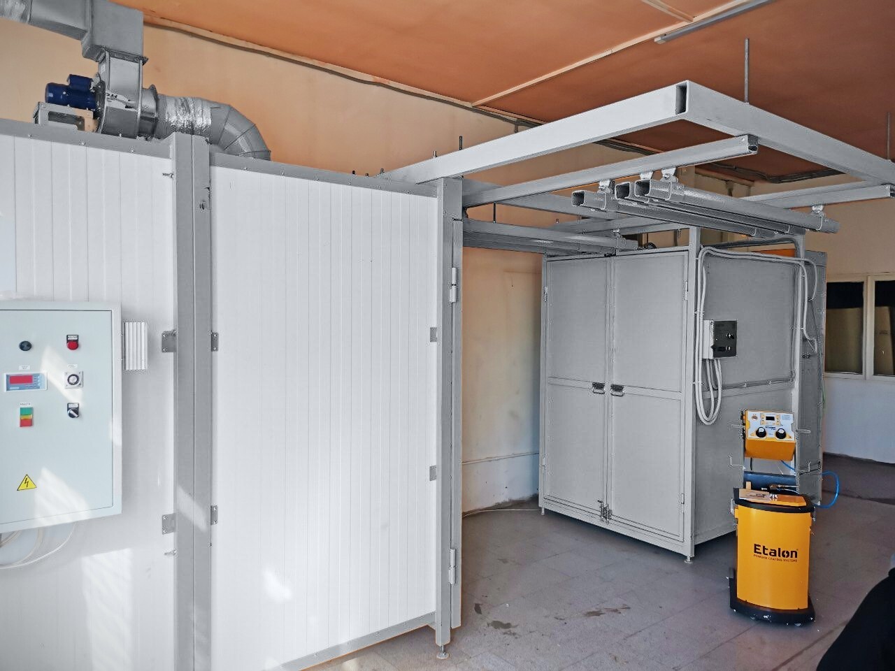 Камера нанесения порошковых покрытий обитаемая, объем (ДхШхВ) 3700х2400х2000 мм, проходная. Распределительный электроблок. Комплект розеток и выключателей.